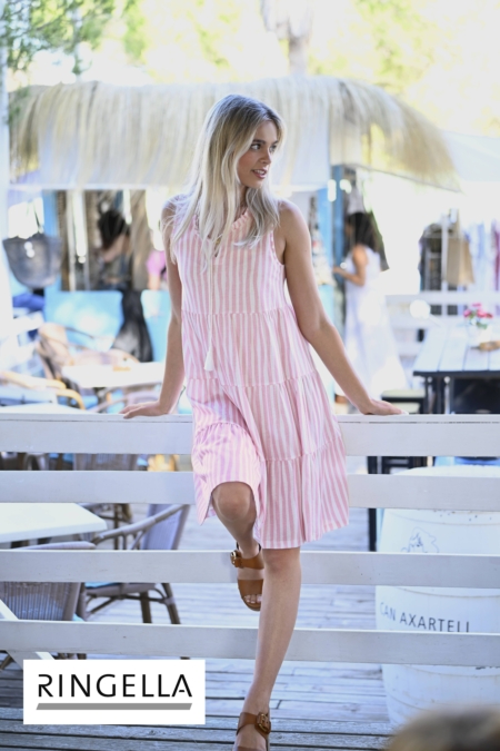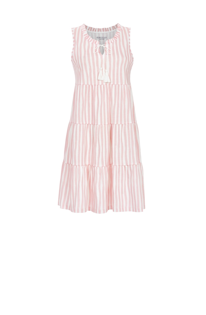 Einfach zauberhaft ist dieses Sleepshirt. Das Dessin im Streifenlook ist ein absolut topmodischer Style. Mit Rüschchen und einer Kordel mit Quasten am Ausschnitt gefertigt. Ohne Arm schön luftig für die warme Sommerzeit. Stufenvolants machen den Look komplett. Die weiche Baumwolle in bewährter Single Jersey-Qualität garantiert jederzeit ein gutes Tragegefühl. Der Stoff zeichnet sich weiterhin durch Atmungsaktivität und Pflegeleichtigkeit aus.