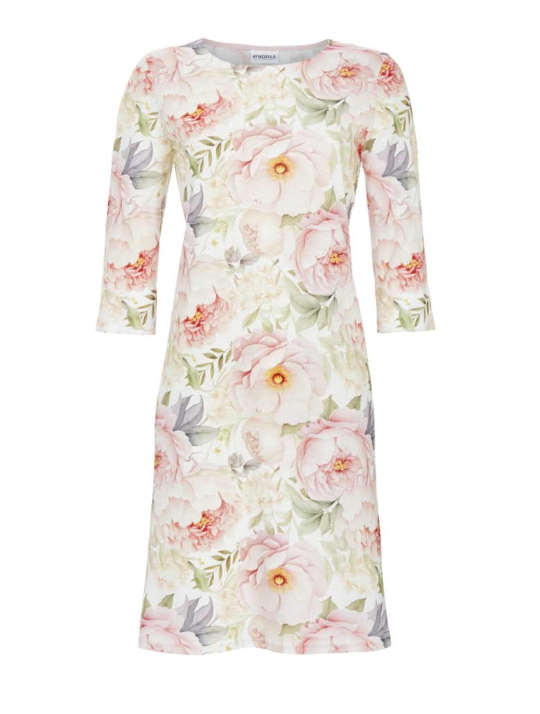 m Blumendessin mit wunderschönen Pfingstrosen zeigt sich dieses Sleepshirt von seiner trendstarken Seite. In harmonischen Farben auf hellem Fond kommen diese sehr gut zur Geltung. Mit 3/4 Arm und modischem Seitenschlitz gefertigt. In dem Mix aus Baumwolle und Modal in Single Jersey-Qualität dürfen Sie sich einfach wohlfühlen. Das Material ist atmungsaktiv und von dauerhafter Farbbrillanz.