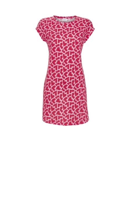 m Dessin mit Herzchen zeigt sich dieses Nachthemd von seiner trendstarken Seite. Auf farbigem Fond kommen die Herzchen sehr gut zur Geltung. Mit sommerlicher Luftigkeit und modisch überschnittener Schulter gefertigt, ist es auch für heiße Tage bestens geeignet. In dem Mix aus Baumwolle und Modal in Single Jersey-Qualität dürfen Sie sich einfach wohlfühlen. Das Material ist atmungsaktiv und von dauerhafter Farbbrillanz