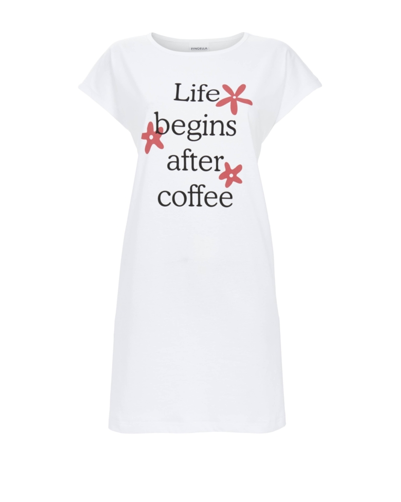 Der Aufmacher für das unifarbige Nachthemd ist hier der große Motivdruck auf dem Vorderteil. Ein schickes Modell mit Placement-Print und überschnittener Schulter. Ideal für laue Sommernächte. Das Material reiner Baumwolle in Single Jersey-Qualität verspricht angenehmen Tragekomfort, Pflegeleichtigkeit und Atmungsaktivität.