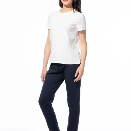 Aus einem angesagten Minimaldessin gefertigt, ist diese Hose ein schöner Hingucker. Mit kontrastfarbigem Gummizugbund ist es ein schickes Modell für die kühlere Jahreszeit. Seitliche Eingrifftaschen mit Kontrastrollierung machen den Look komplett. Die Hose aus feinem Baumwoll-Elasthan-Mix überzeugt durch Farbbrillanz und Formstabilität. Ideal zum Kombinieren mit einem schicken Oberteil aus unserer Nachtwäsche Kollektion. Genießen Sie erholsame Nächte und entspannte Tage mit unserer stilvollen Hose.