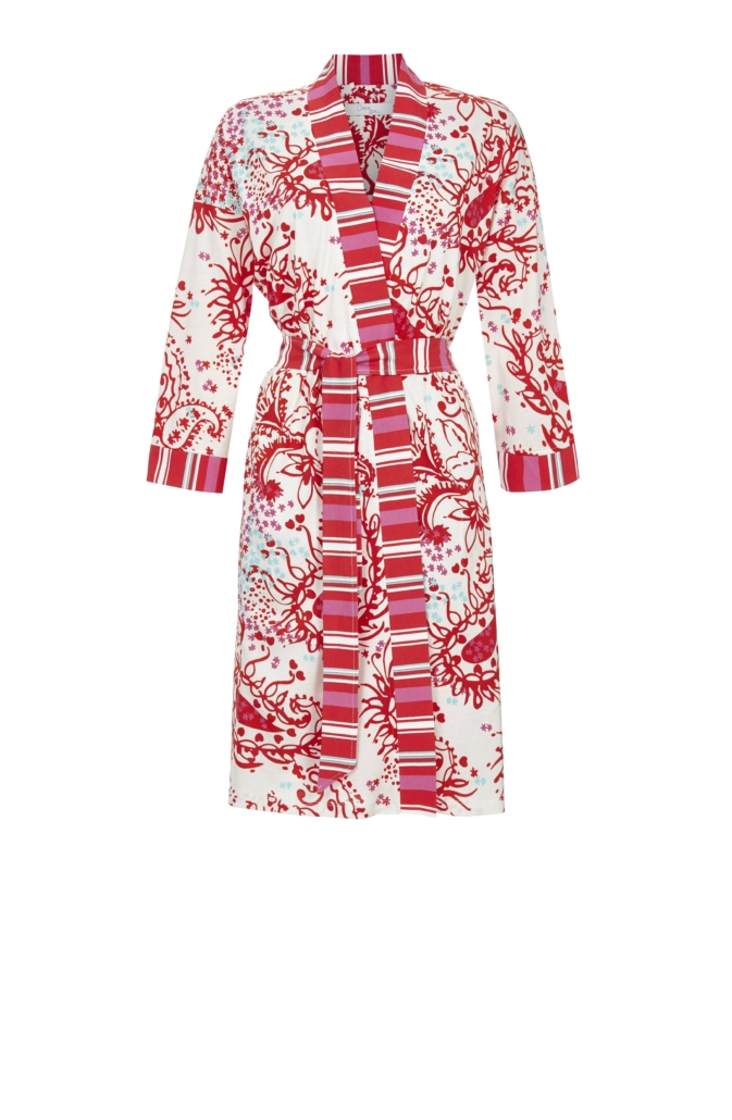 Der Wickelmantel im trendigen Paisley-Dessin mit modischen 3/4 Ärmeln ist ein richtiger Blickfang. Kontrastblenden im Streifendessin unterstreichen den schönen Look perfekt. Ein Bindegürtel reguliert ganz individuell die Weite. Zwei seitliche Eingrifftaschen bieten zusätzlichen Komfort. Hergestellt aus hochwertiger Baumwoll-Modal-Ware in Single Jersey-Qualität liegt der Stoff weich auf der Haut und garantiert vollsten Tragekomfort. Um dieses stylische Modell wird man Sie beneiden.