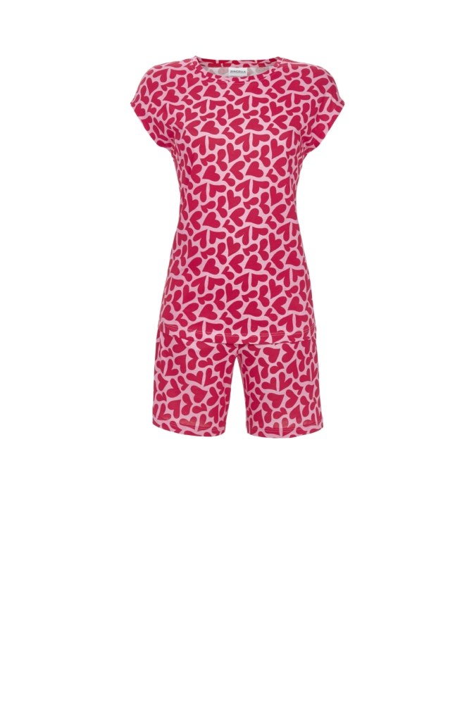 Von seiner trendstarken Seite zeigt sich dieser Kurzpyjama im Herzchen-Dessin. Auf farbigem Fond kommen die Herzchen sehr gut zur Geltung. Ohne Arm ist dieser Shorty schön luftig und für heiße Tage bestens geeignet. Die modische Shorts hat seitliche Eingrifftaschen und ein praktisches Gummizugbund für vollsten Komfort. In dem Mix aus Baumwolle und Modal in Single Jersey-Qualität dürfen Sie sich einfach wohlfühlen. Das Material ist atmungsaktiv und von dauerhafter Farbbrillanz.