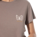 – Dezenter, gezeichneter Schmetterling auf der Brust als femininer Akzent