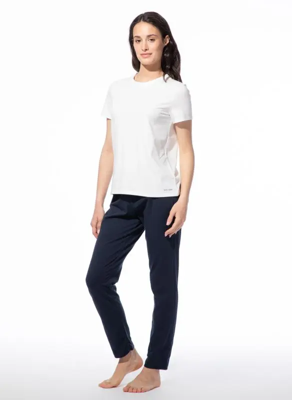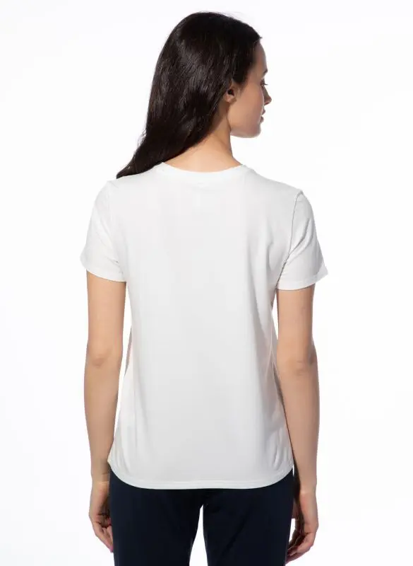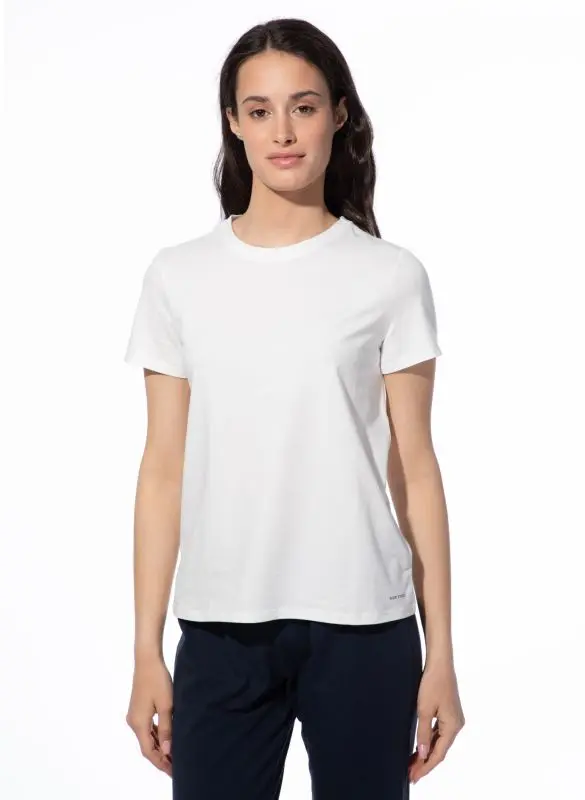 Das unkomplizierte Basic T-Shirt in Off-White von Short Stories ist ideal für zahlreiche Kombinationsmöglichkeiten. Es besticht durch seine optimale Passform dank elastischer Single-Jersey-Qualität. Der Rundhalsausschnitt ist innen mit einem kleinen Schleifchen verziert. In unifarbener Gestaltung lässt sich das T-Shirt vielseitig kombinieren. Zudem ist es pflegeleicht und trocknerbeständig, was es besonders praktisch für den Alltag macht.
